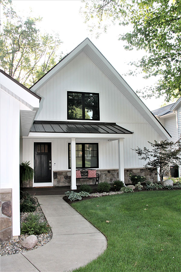 The Cruwys didn’t stop there. They realized if going this far in with a home facelift, why not remove a few little balconies and add a front porch? This structural change elevated the home from a 70s look to a modern-looking lakefront home.