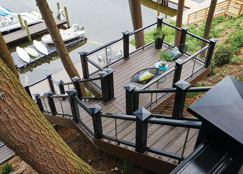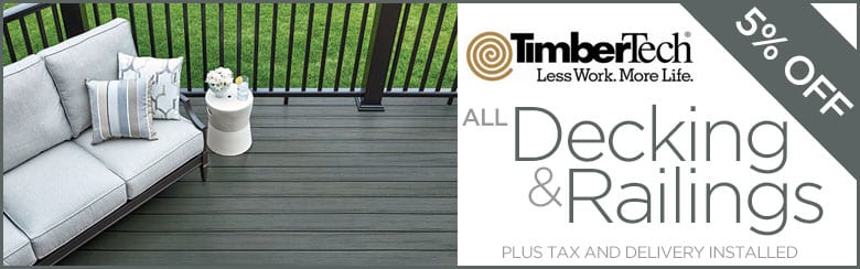 Made in the USA from approximately 60% recycled material, including post-construction scrap like vinyl siding and trim, TimberTech Advanced PVC decking is a sustainable option. Plus, it’s fully recyclable at the end of its useful life.