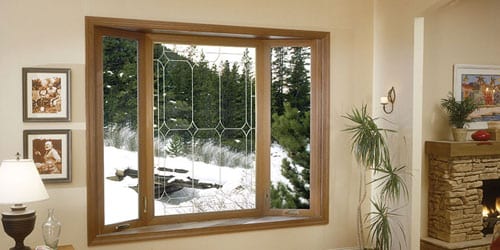 • Bay windows typically have a large center-fixed window with equal-size flankers on each side using a double-hung or casement unit. The side flankers are configured at a 30-degree or 45-degree angle.