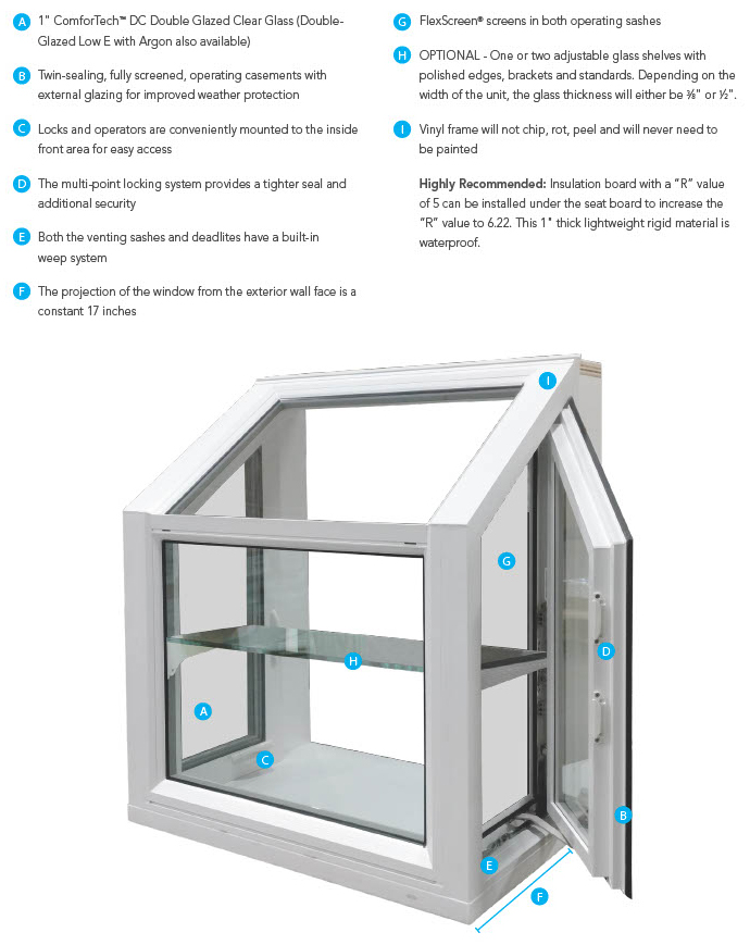 Garden windows provide a unique addition to any style home. They look great in a kitchen, bathroom, or den, providing the perfect place for decorative accents, or plants and herbs. The style not only allows more light, but helps to open up any room.
